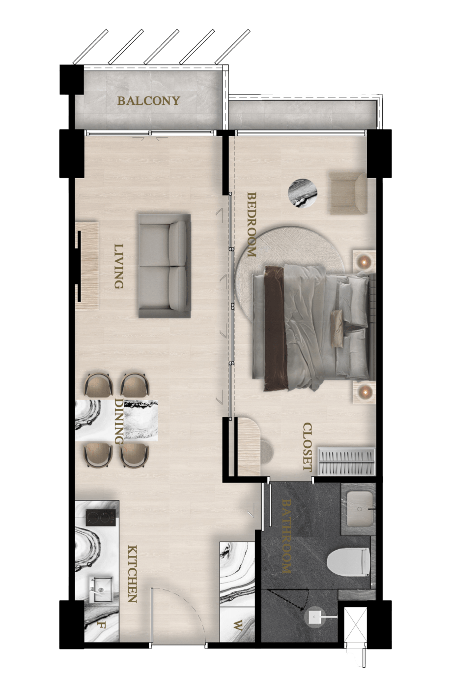 От студий до просторных квартир с двумя спальнями — выбирайте свой идеальный формат жизни. Бассейн с водопадом, тематические сады, йога-зал, рестораны и кафе прямо на территории. Всё для того, чтобы вы чувствовали себя как в роскошном отеле, не покидая дома. Добро пожаловать в пространство, где забота о себе — часть повседневности. | | | | | | Апартаменты 1+1 | - одна спальня и кухня-гостиная;