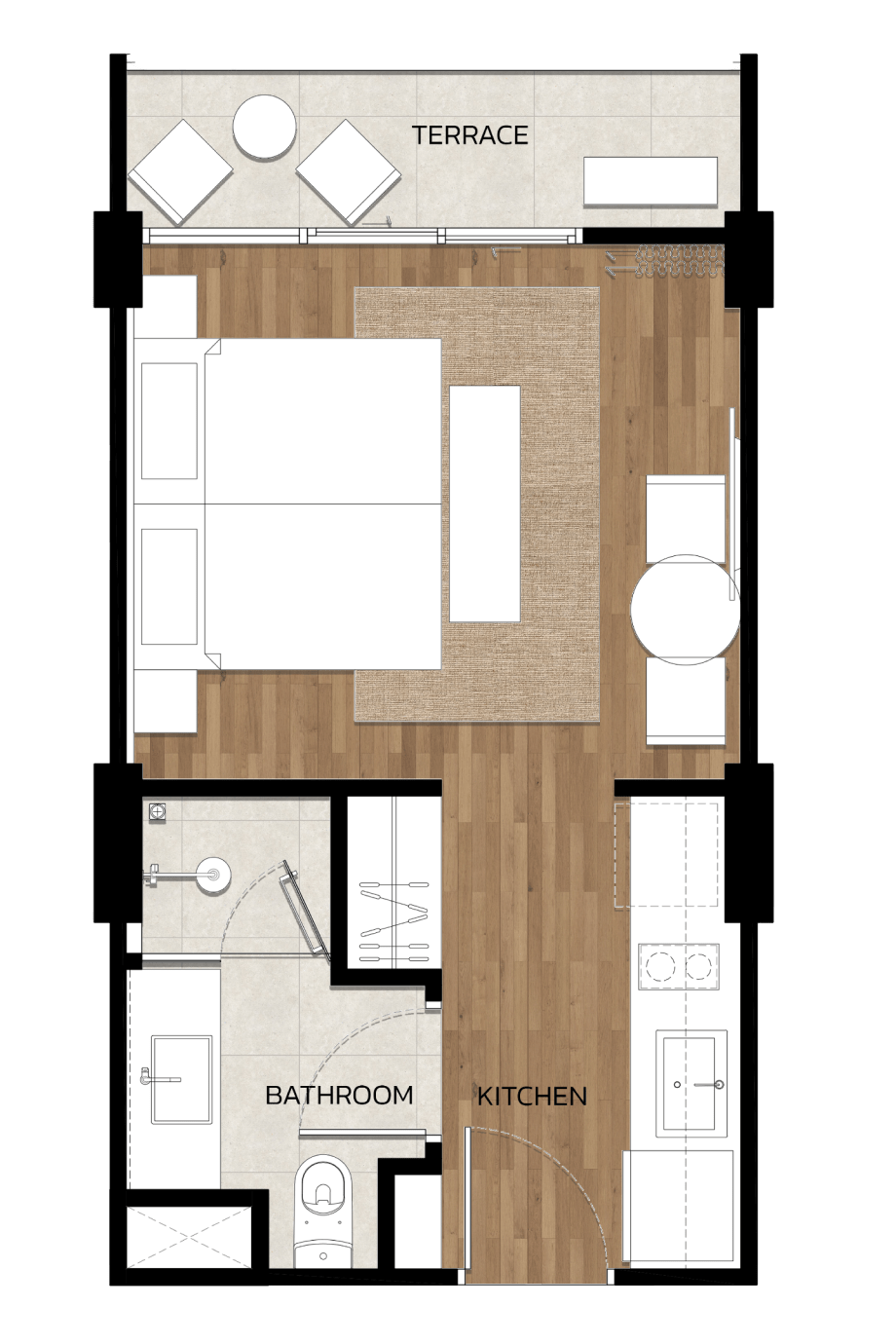 | | №1 Апартаменты в курортном комплексе на Банг Тао, Пхукет | | Новый комплекс апартаментов, расположенный в престижном и активно развивающемся районе Банг Тао на Пхукете, предлагает уникальную возможность для комфортного проживания и выгодных инвестиций. Проект находится всего в 1 км от знаменитого пляжа Банг Тао, что делает его идеальным выбором для тех, кто ценит близость к морю и современную инфраструктуру. Комплекс включает 614 юнитов, среди которых студии, апартаменты с одной, двумя и тремя спальнями. | | | | | | | срок сдачи: 1 кв. 2028 г. | | | | | Апартаменты 1+0 | - планировка студия