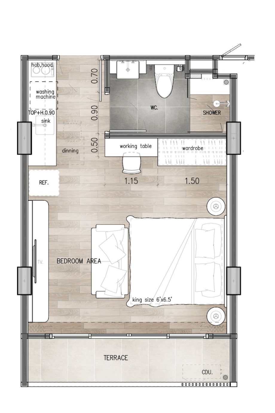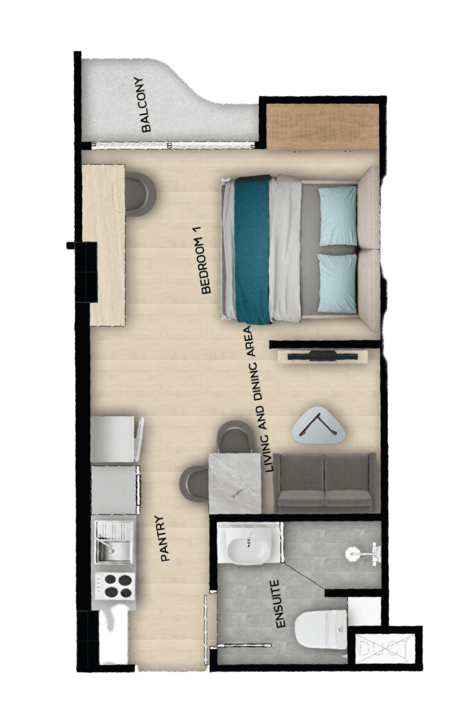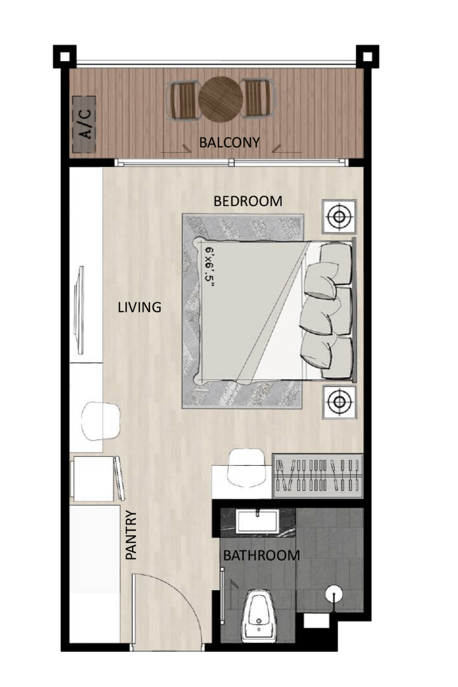| | №1 Современный кондоминимум в районе Чалонг | | Комплекс находится в тихом и спокойном районе, вдали от туристической суеты. При этом он расположен всего в 10 минутах езды от трёх самых популярных пляжей острова. Рядом с комплексом находятся международные школы, что делает его идеальным местом для семей с детьми. Также недалеко от комплекса расположен пирс Чалонг, откуда можно отправиться на пароме на самые красивые острова. | | | | | | Апартаменты 1+0 | - планировка студия
