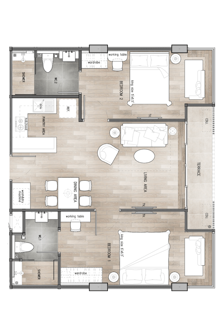 от 103 200$ | | | | | | Апартаменты 2+1 | - две спальни;