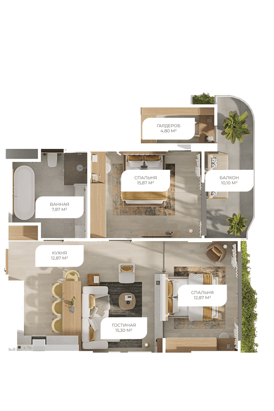 от 103 200$ | | | | | | Апартаменты 2+1 | - две спальни;