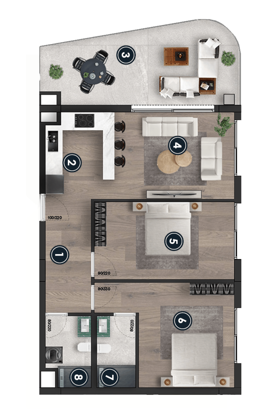 Апартаменты пользуются большим спросом как для долгосрочной аренды, что делает их отличным вариантом для постоянного проживания, так и для краткосрочной аренды, что привлекает инвесторов, заинтересованных в сдаче недвижимости в аренду. Этот комплекс — идеальное место для тех, кто хочет наслаждаться всеми преимуществами жизни у моря и комфортом современных удобств. | | | | | | Апартаменты 2+1 | - площадь 85-91 м2
