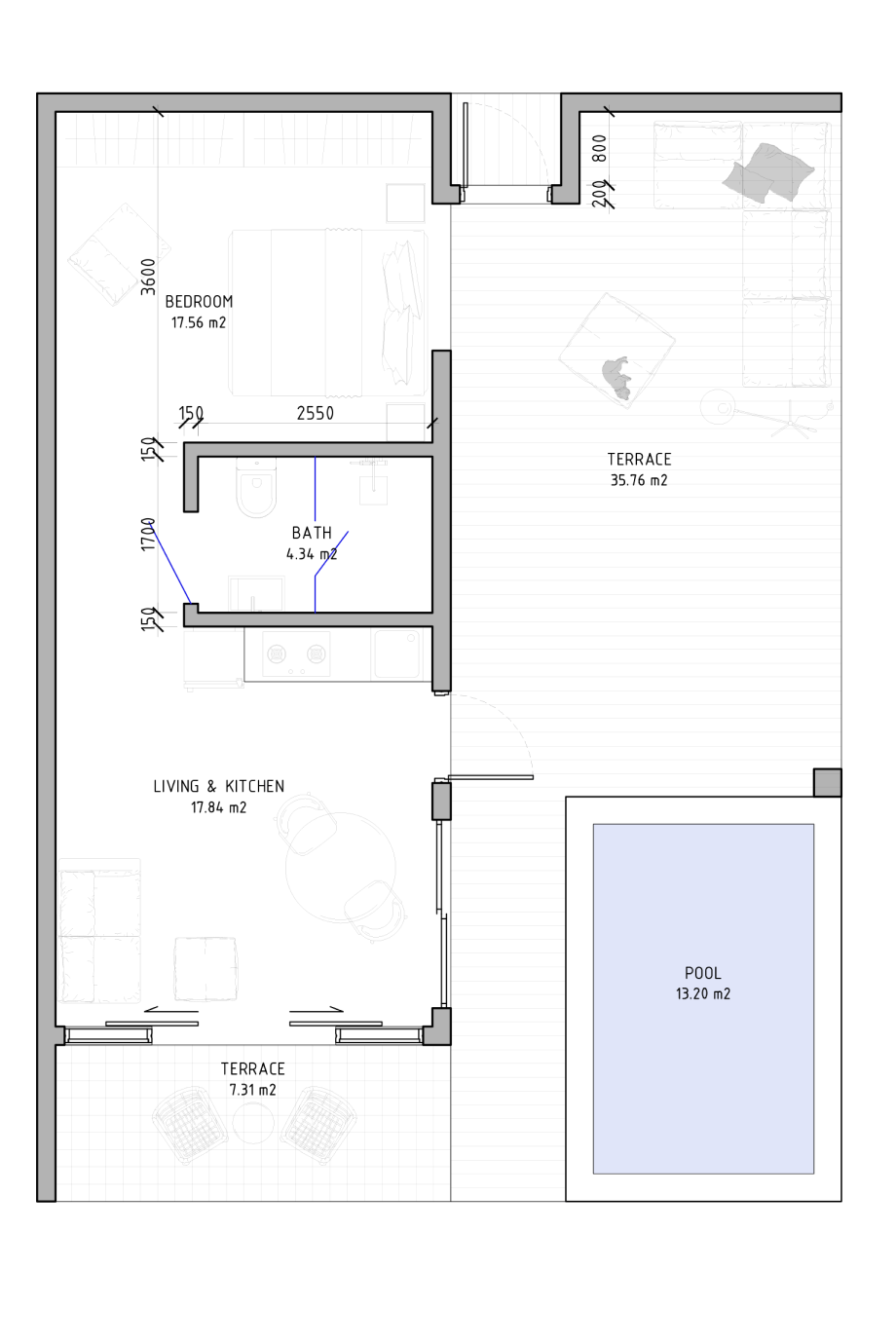 от 330 000$ | | | | | | Вилла 1+1 | - одна спальня;