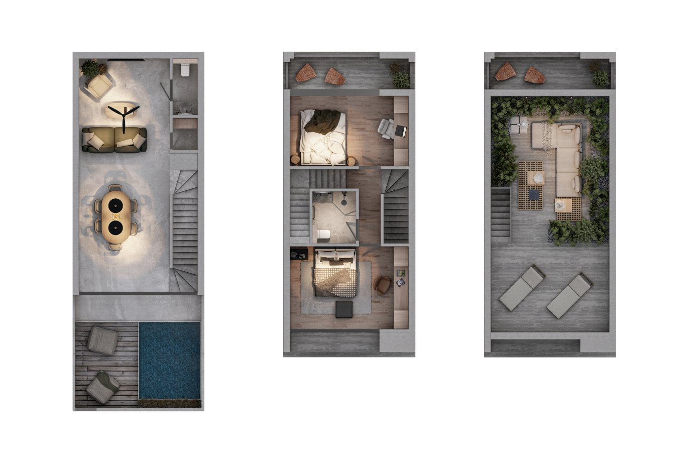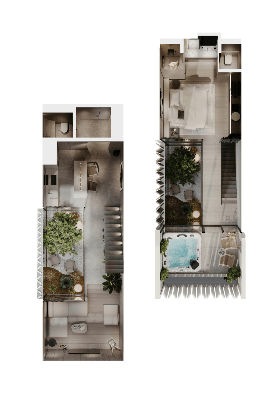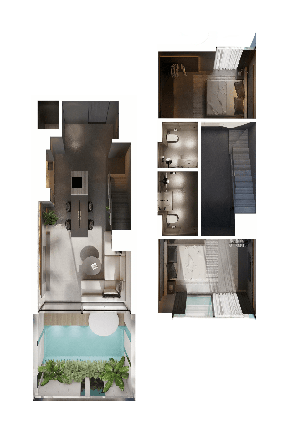от 359 000$ | | | | | | Полная меблировка с системой "умный дом" включена в стоимость | | | | | №3 Комплекс таунхаусов в инвестиционном проекте в Улувату | | Комплекс из 10 комфортабельных таунхаусов, расположенный в одном из самых живописных мест мира, в районе Улувату на острове Бали. Этот проект представляет собой прекрасную возможность для инвесторов получить высокую доходность от своих вложений. | | | | | | Таунхаус 2+1 | - две спальни;