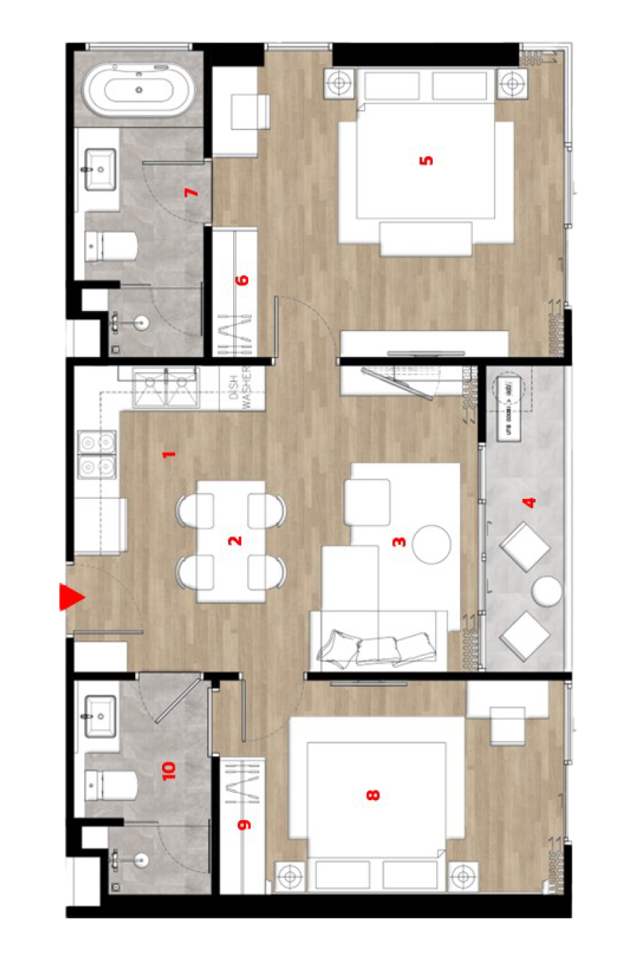| | №1 Апартаменты в курортном комплексе на Банг Тао, Пхукет | | Новый комплекс апартаментов, расположенный в престижном и активно развивающемся районе Банг Тао на Пхукете, предлагает уникальную возможность для комфортного проживания и выгодных инвестиций. Проект находится всего в 1 км от знаменитого пляжа Банг Тао, что делает его идеальным выбором для тех, кто ценит близость к морю и современную инфраструктуру. Комплекс включает 614 юнитов, среди которых студии, апартаменты с одной, двумя и тремя спальнями. | | | | | | | срок сдачи: 1 кв. 2028 г. | | | | | Апартаменты 2+1 | - планировка 2+1