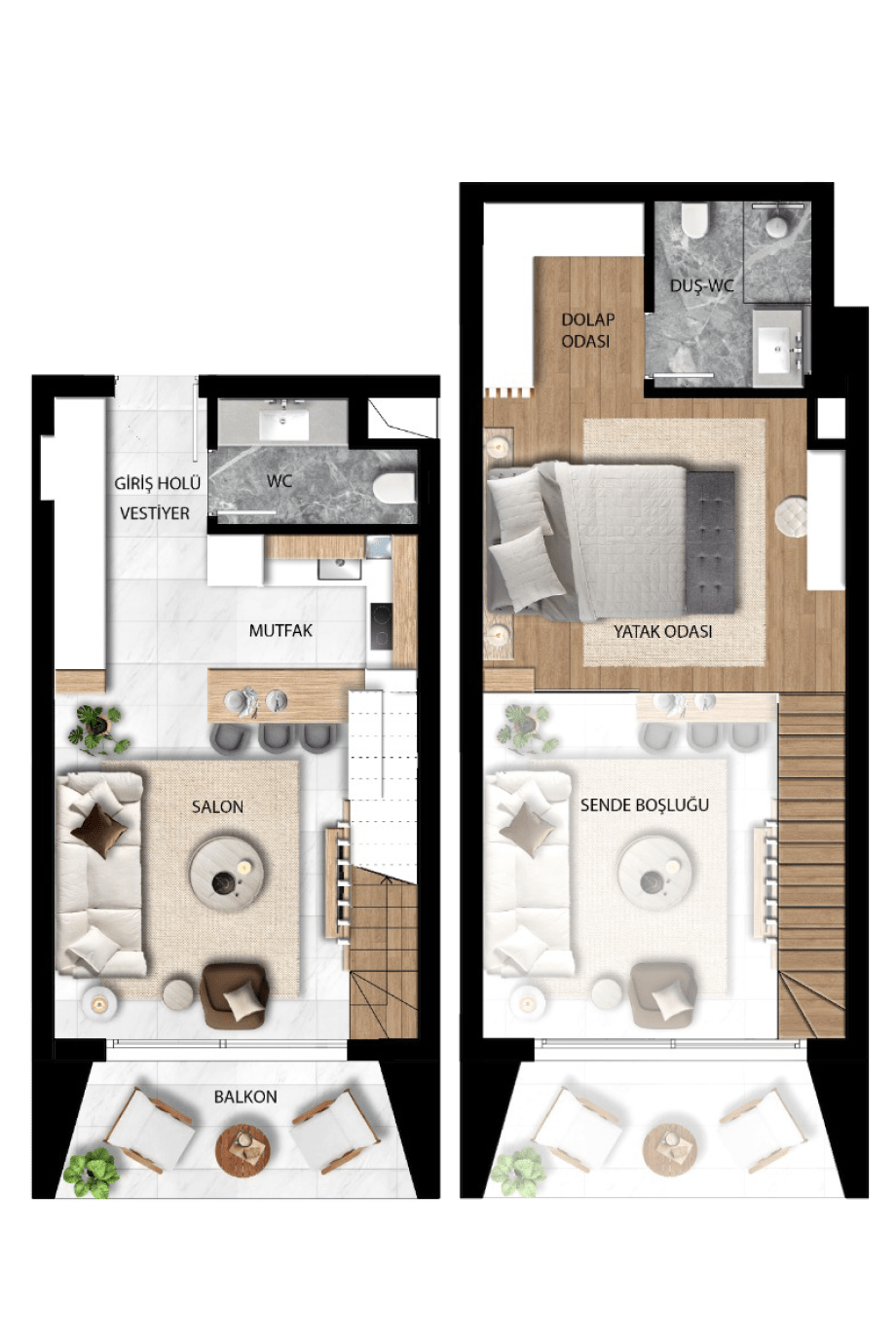 от 146 490$ | | | | | | Апартаменты 1+1 Loft | - площадь 58 - 89,2 м2