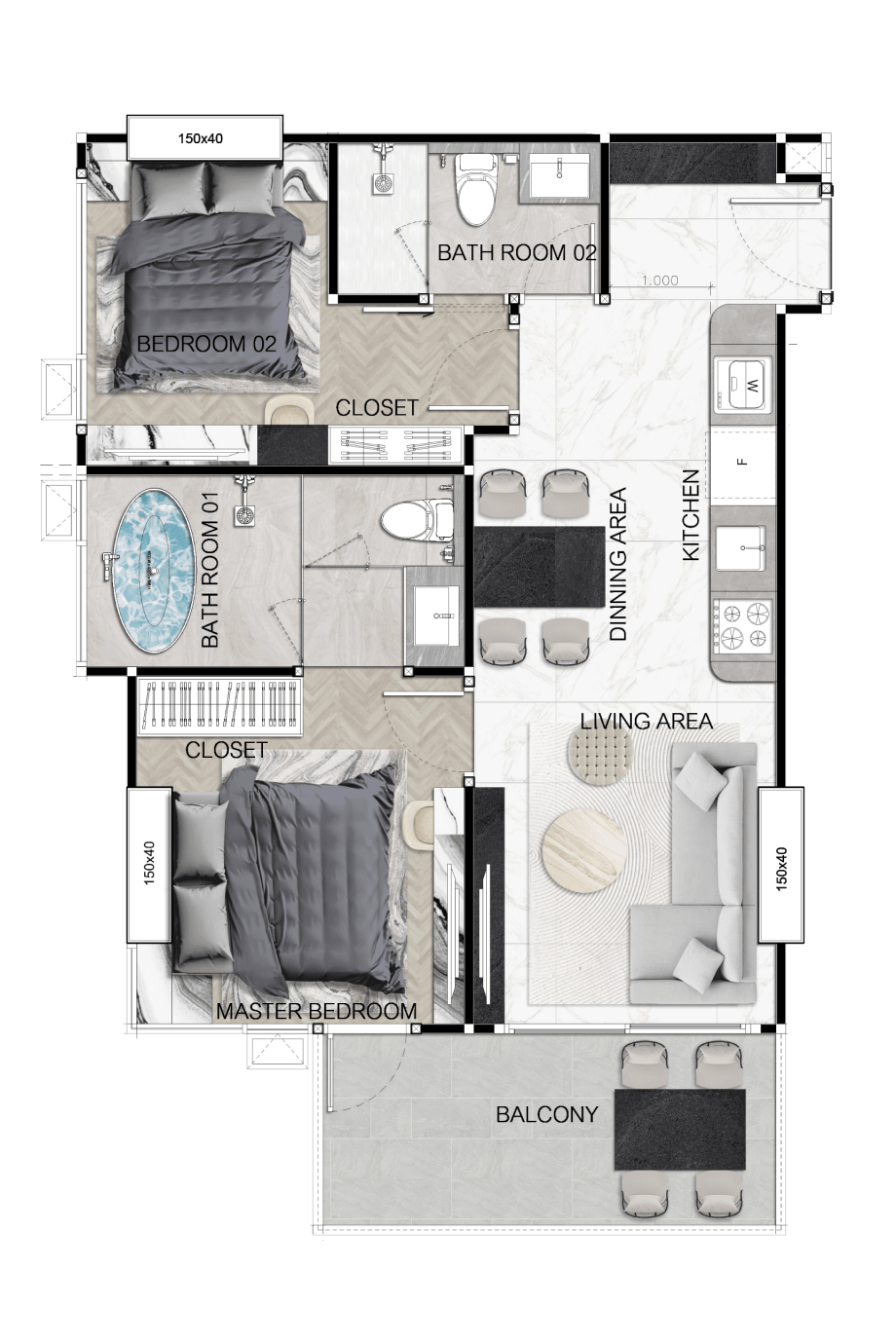 | | №1 Кондоминимум премиум-класса в 550 м. от пляжа Джомтьен, Паттайя | | Добро пожаловать в мир утончённой роскоши и абсолютного комфорта — современный кондоминиум в 550 метрах от бирюзового побережья Джомтьен. Панорамный бассейн на крыше, дизайнерские интерьеры, уникальные зоны отдыха и премиальный сервис уровня пятизвёздочного отеля создают атмосферу, в которой хочется остаться навсегда. Это не просто недвижимость — это стиль жизни, где море рядом, а пространство продумано до каждой детали. | | | | | | Апартаменты 2+1 | - две спальни и кухня-глстиная;