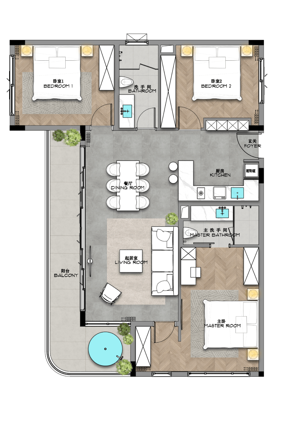 от 410 350$ | | | | | | Апартаменты 3+1 | - три спальни;